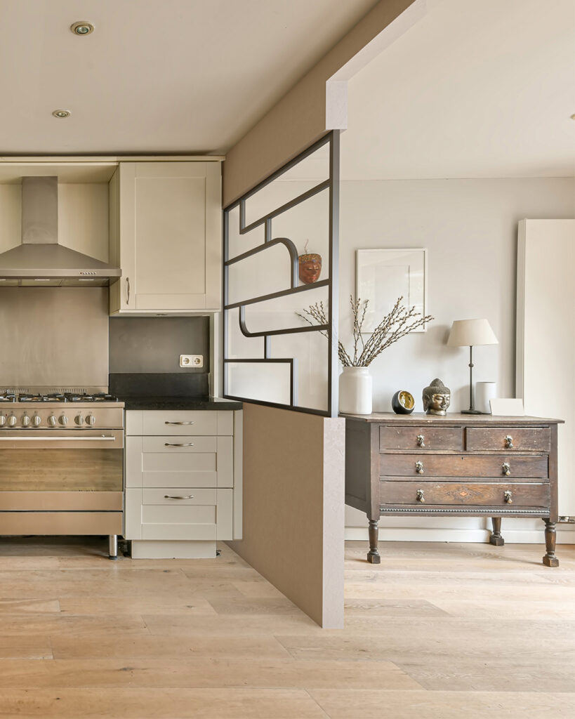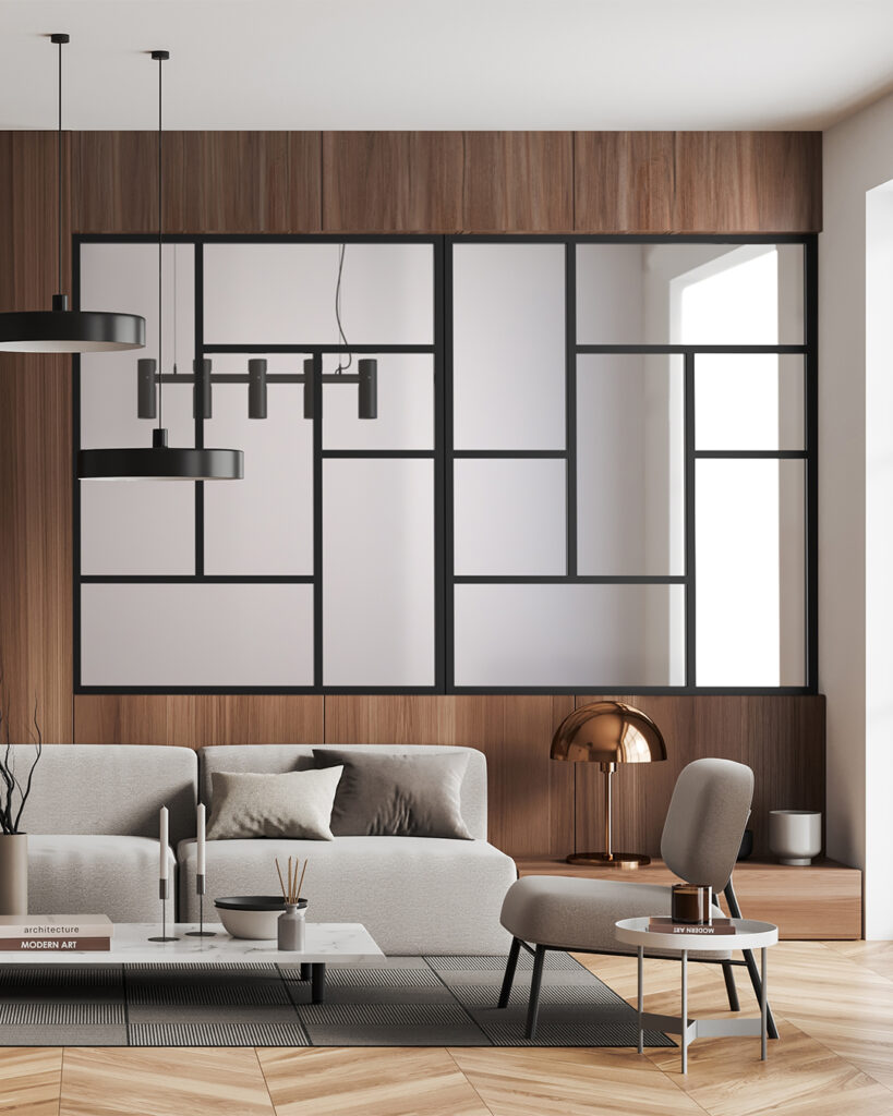 Pour certains projets, la meilleure signature se joue dans l’équilibre : acier + laiton, acier + inox, ou acier + bois dans l’environnement. L’objectif reste le même : créer une verrière cohérente, harmonieuse, et parfaitement intégrée.