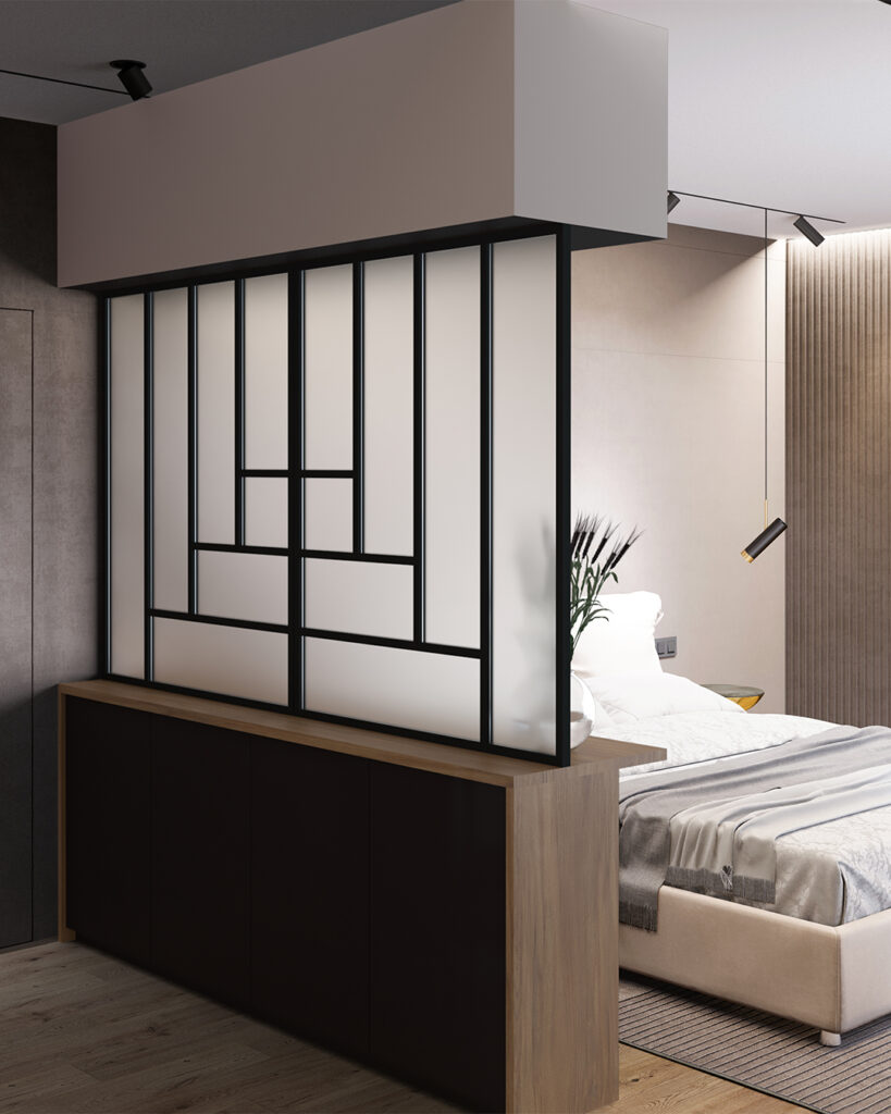 Pour aller plus loin que la verrière “atelier” classique, nous développons aussi des verrières aux designs uniques dessinées avec notre décoratrice partenaire Natalia (Casa de Anna). L’idée : proposer des modèles singuliers, adaptables à vos dimensions, fabriqués par Ladame Métallerie.